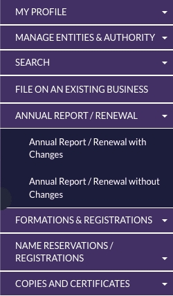 Select “Annual Report/Renewal with Changes“.